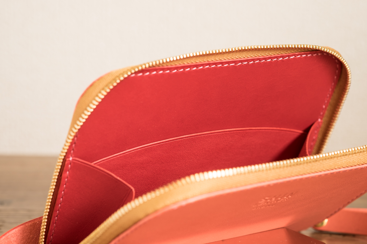 カラー/外装=ピンク・内装=レッド・ステッチ=ピンク