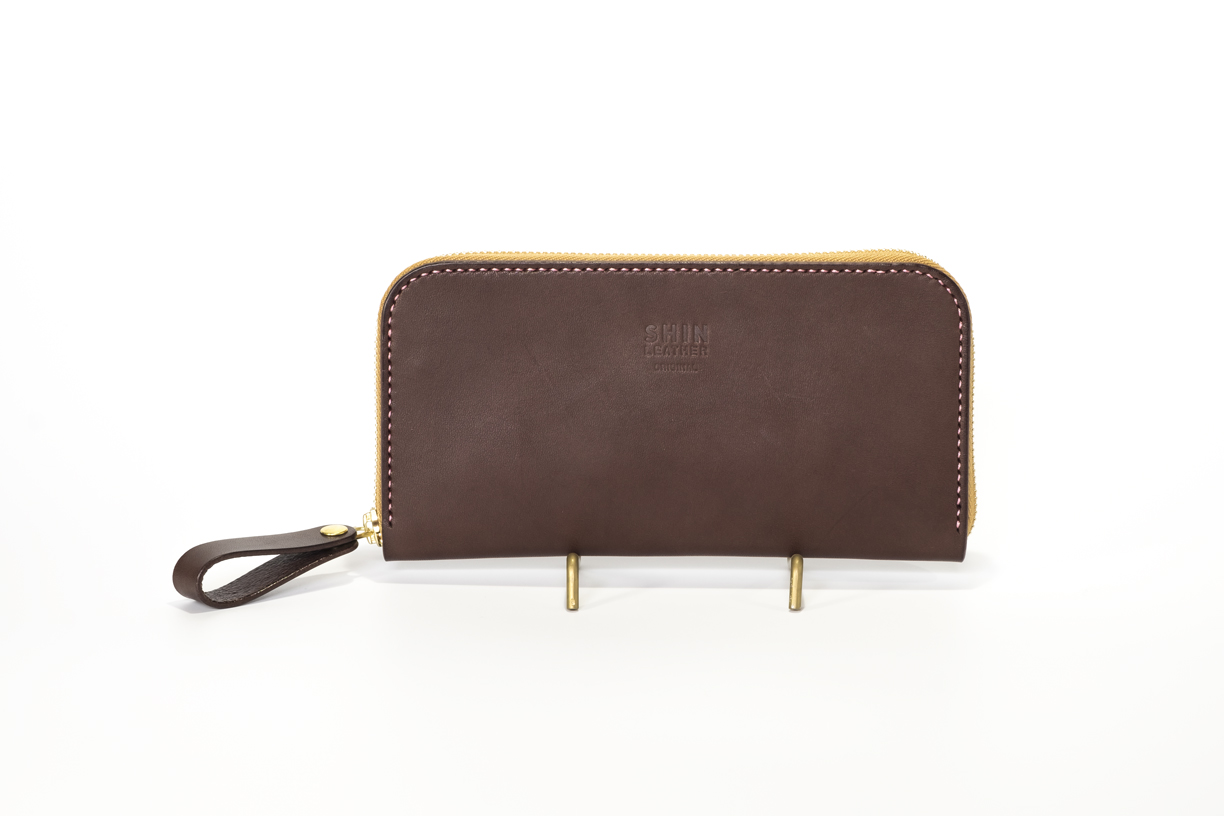 カラー/外装=チョコ 内装=ピンク ステッチ=ピンク
