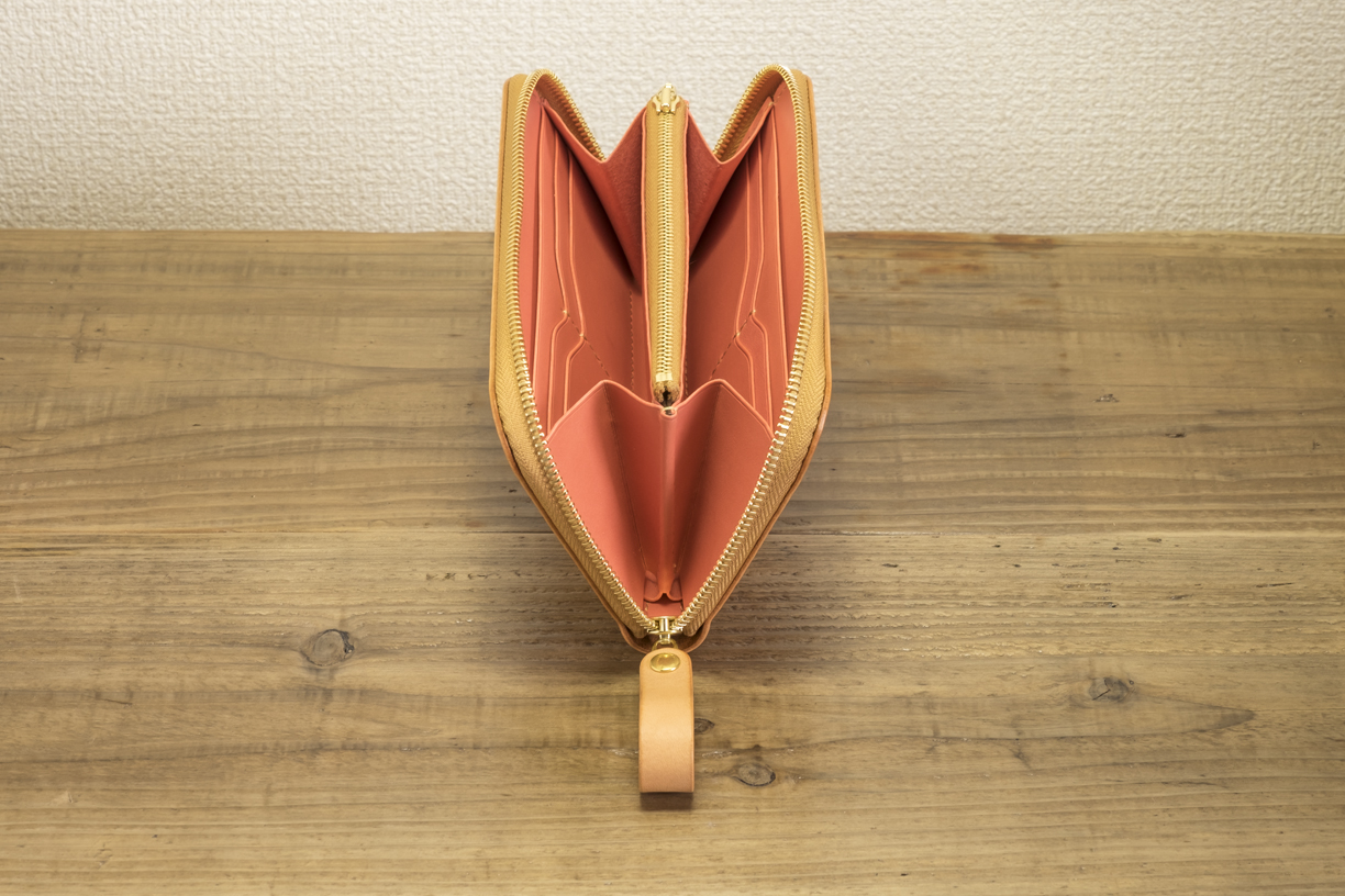 カラー/外装=ナチュラル 内装=ピンク ステッチ=ゴールド