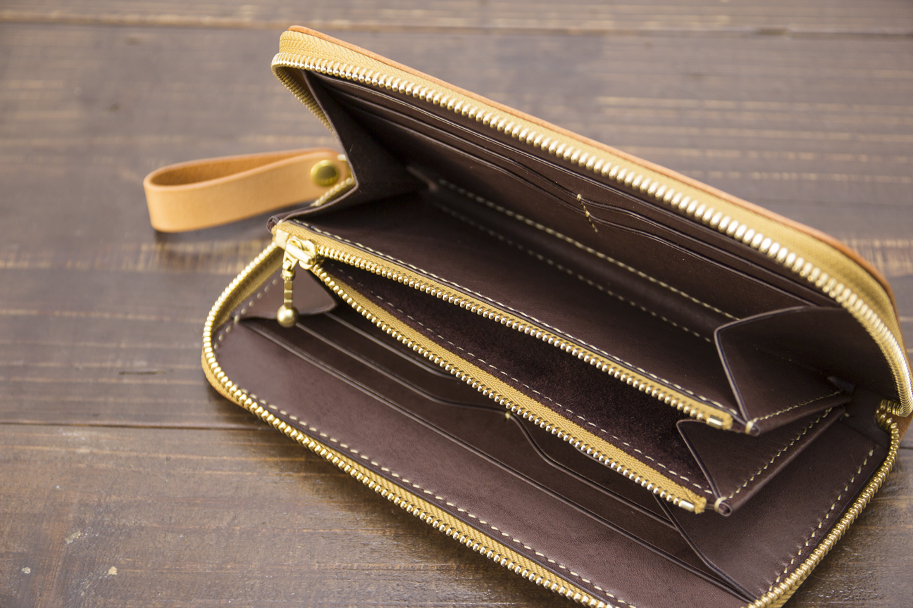 カラー/外装=ナチュラル 内装=チョコ ステッチ=ゴールド