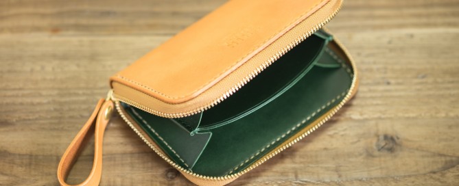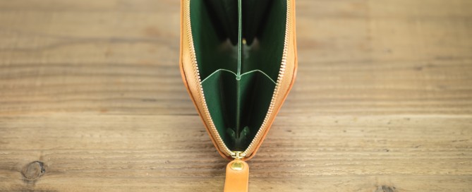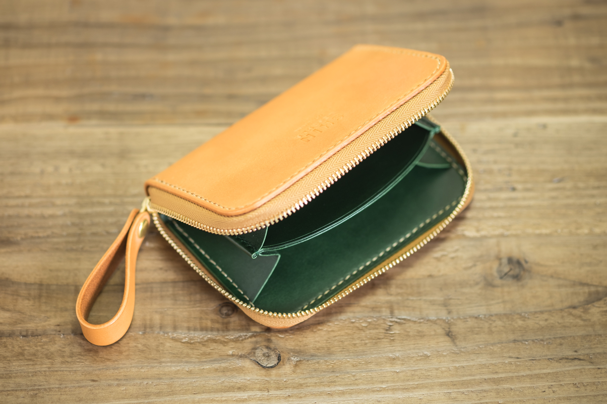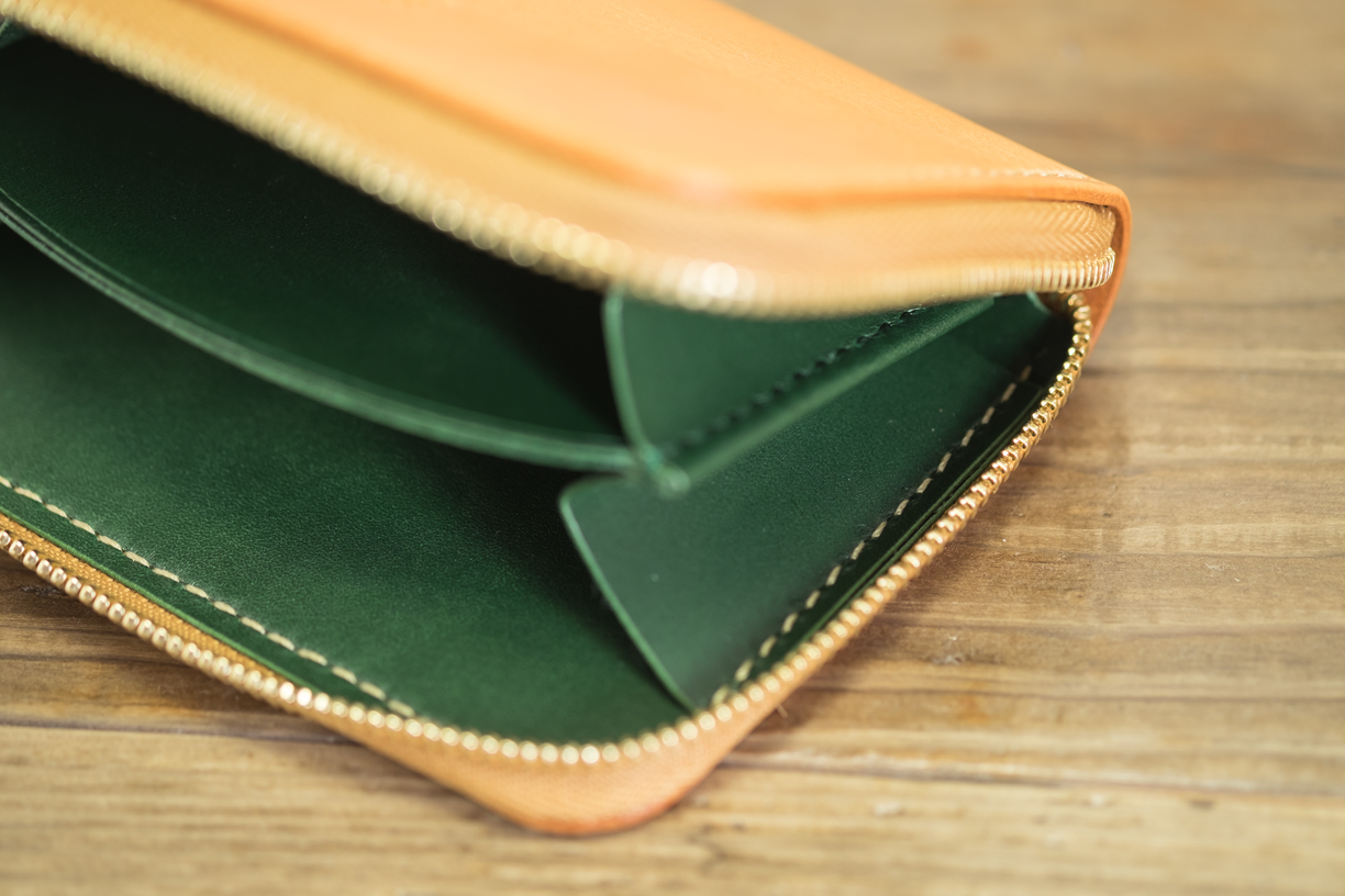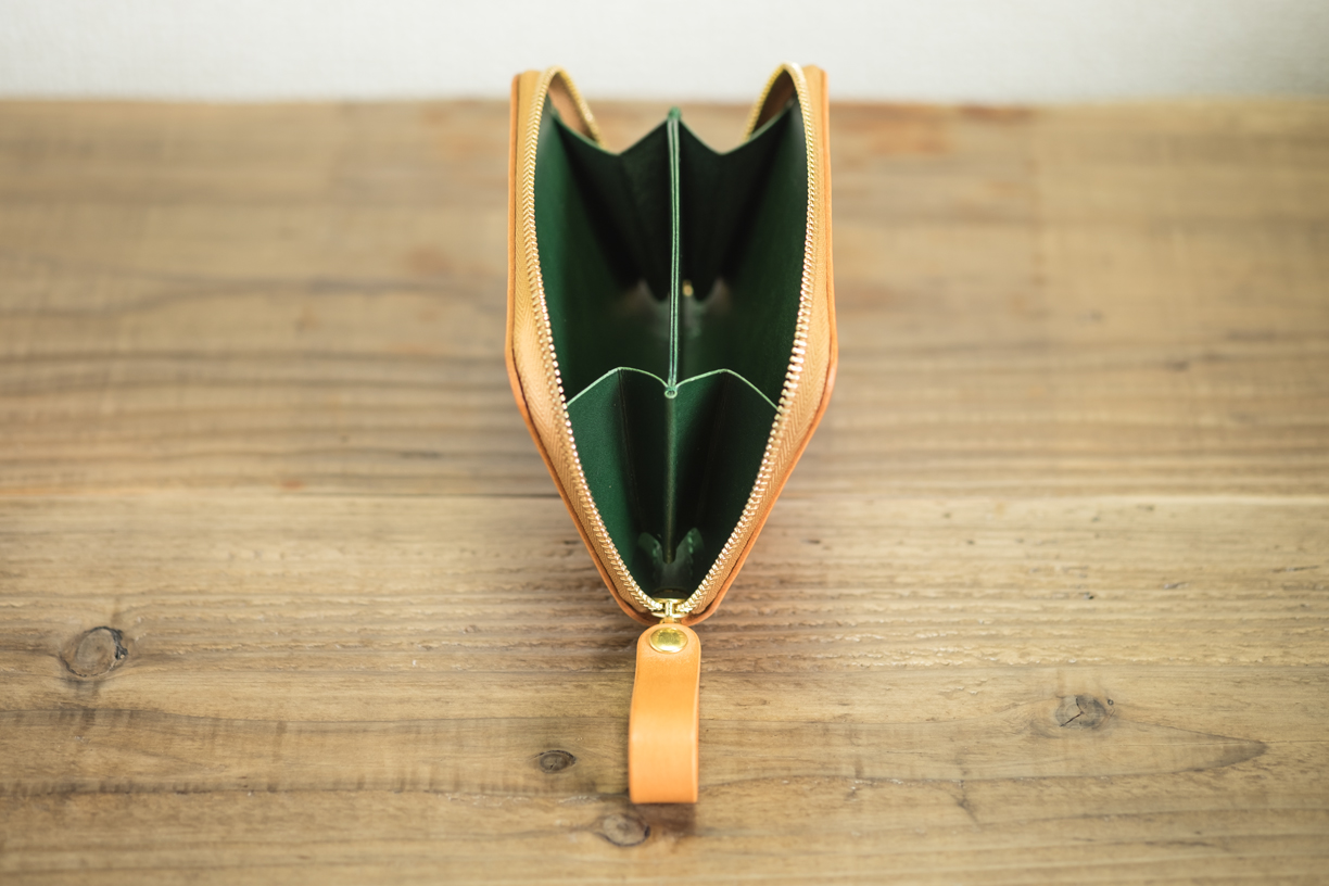 カラー/外装=ナチュラル・内装=グリーン・ステッチ=ゴールド